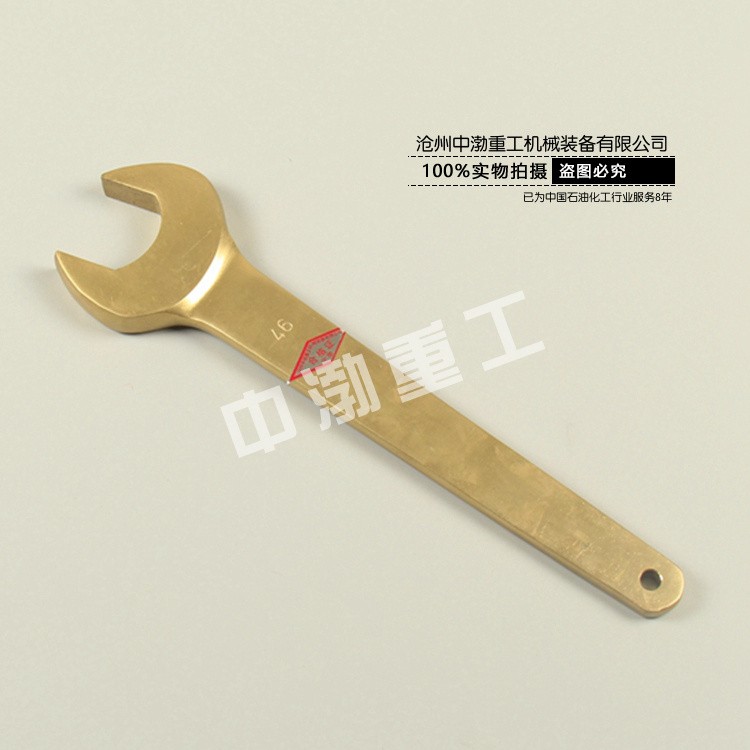 防爆單頭呆扳手,是重要的防爆扳手,采用鋁青銅合金制造,直柄設計,更加省力。一端制有固定尺寸的開口 ,用以擰轉一定尺寸的螺母或螺栓