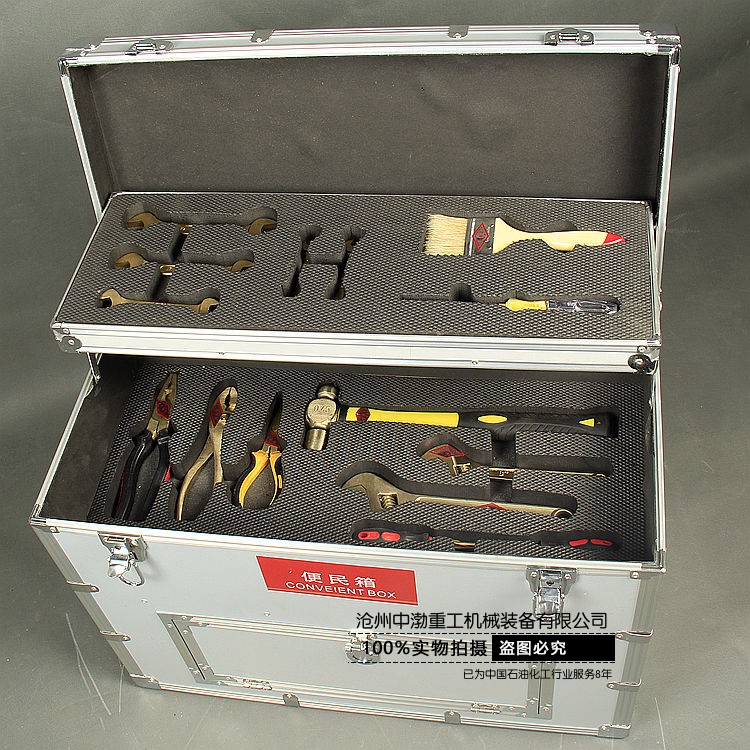 防爆便民箱/便民箱(中石油標(biāo)準(zhǔn)配置)包括:毛刷、電筆、防爆雙頭呆扳手、防爆活扳手、防爆圓頭錘、防爆一字螺絲刀、防爆十字螺絲刀、防爆尖嘴鉗、防爆克絲鉗、防爆鯉魚(yú)鉗。