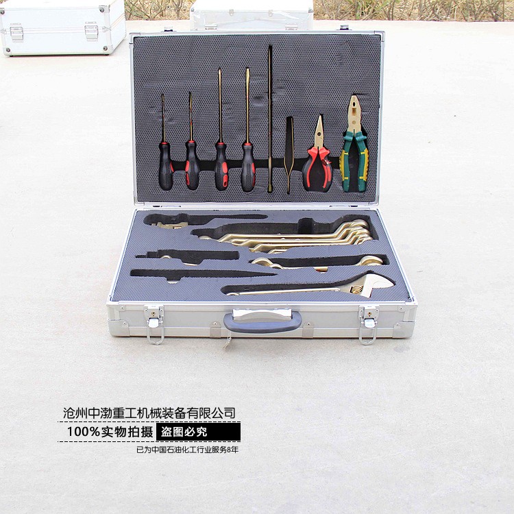 公司生產(chǎn)的防爆工具箱種類(lèi)齊全,包括:加油站用組合工具箱、油庫(kù)用組合工具箱、天然氣用組合工具箱、礦山搶險(xiǎn)用組合工具箱、檢維修用組合工具箱、成品油計(jì)量工具箱等。 工具箱規(guī)格:7件套、10件套、12件套、16件套、24件套、30件套、32件套、36件套、42件套、50件套、56件套、100件套等。公司還可以根據(jù)客戶(hù)的實(shí)際工作需要組合常用的防爆工具套裝。 公司生產(chǎn)的防爆工具有400余個(gè)系列近萬(wàn)種規(guī)格。該產(chǎn)品能有效的防止工具與工作物相互摩擦、撞擊時(shí)產(chǎn)生的可燃性爆炸,確保財(cái)產(chǎn)和人身安全。廣泛用于石油、化工、礦山、防恐怖、防磁場(chǎng)、煤礦、采氣、油氣管道、發(fā)電、冶金、航空、儲(chǔ)運(yùn)、制藥、制氣、塑料、化纖、皮革、煙火、爆竹等行業(yè)。