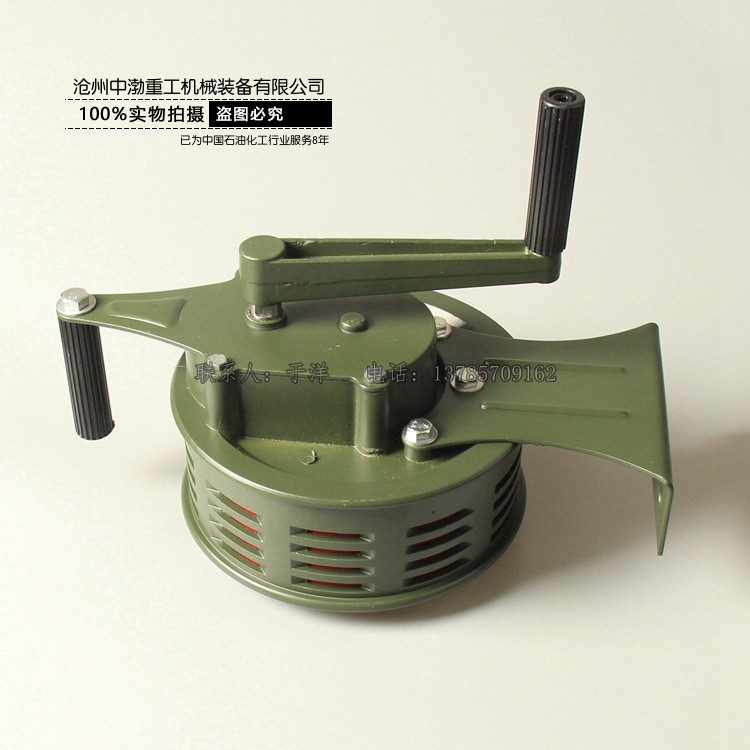 手搖警報(bào)器無(wú)需電源,可 以在無(wú)電源支持的都場(chǎng)所提供一種有效的報(bào)警。只需通過(guò)人工用手順時(shí)針?lè)较驌u動(dòng)手柄,速度達(dá)到初級(jí)(50-80轉(zhuǎn)/分)就可達(dá)到理想的報(bào)警效果,發(fā)出的聲音 尖銳,震撼力大、穿透力強(qiáng)。警報(bào)聲音大小取決于手柄搖動(dòng)的速度,新款手搖警報(bào)在音窗口設(shè)置檔板快門(mén)機(jī)制,可以迅速關(guān)閉音窗口,阻斷聲音,產(chǎn)生不同的信號(hào)。 (老款產(chǎn)品不具備此項(xiàng)功能!)手搖警報(bào)器體積小、重量輕、便于攜帶、安裝方便,不需要任何工具。只需0.15平方米的面積和人站立的地方就可以正常操作 了,流動(dòng)性作業(yè)非常強(qiáng)。民防、部隊(duì)、看守所、監(jiān)獄、礦山、機(jī)場(chǎng)、草場(chǎng)、油庫(kù)、倉(cāng)庫(kù)、賓館、酒店等企業(yè)單位在發(fā)生危急情況下使用的一種理想報(bào)警設(shè)備。