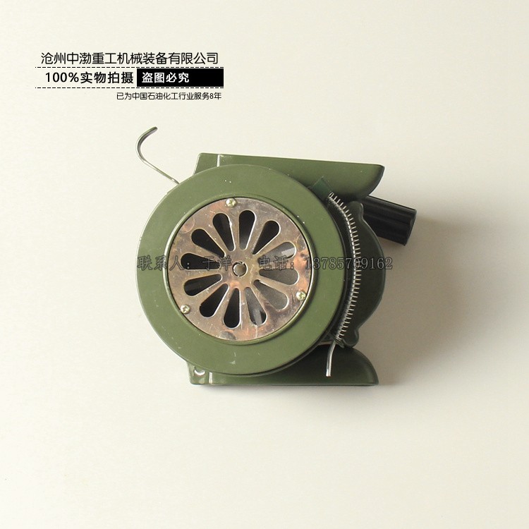 手搖警報(bào)器無需電源,可 以在無電源支持的都場(chǎng)所提供一種有效的報(bào)警。只需通過人工用手順時(shí)針方向搖動(dòng)手柄,速度達(dá)到初級(jí)(50-80轉(zhuǎn)/分)就可達(dá)到理想的報(bào)警效果,發(fā)出的聲音 尖銳,震撼力大、穿透力強(qiáng)。警報(bào)聲音大小取決于手柄搖動(dòng)的速度,新款手搖警報(bào)在音窗口設(shè)置檔板快門機(jī)制,可以迅速關(guān)閉音窗口,阻斷聲音,產(chǎn)生不同的信號(hào)。 手搖警報(bào)器體積小、重量輕、便于攜帶、安裝方便,不需要任何工具。只需0.15平方米的面積和人站立的地方就可以正常操作 了,流動(dòng)性作業(yè)非常強(qiáng)。民防、部隊(duì)、看守所、監(jiān)獄、礦山、機(jī)場(chǎng)、草場(chǎng)、油庫、倉庫、賓館、酒店等企業(yè)單位在發(fā)生危急情況下使用的一種理想報(bào)警設(shè)備。