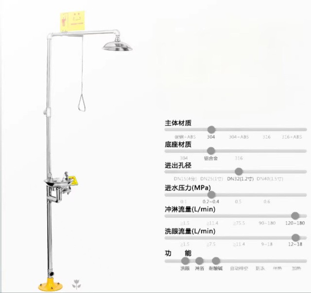 洗眼器是當(dāng)發(fā)生有毒有害物質(zhì)(如化學(xué)液體等)噴濺到工作人員身體、臉、眼或發(fā)生火災(zāi)引起工作人員衣物著火時(shí),采用的一種迅速將危害降到低的有效的安全防護(hù)用品。在石油、化工、半導(dǎo)體工業(yè)、醫(yī)藥制造業(yè)和有危險(xiǎn)物品暴露的場(chǎng)所,得到廣泛應(yīng)用