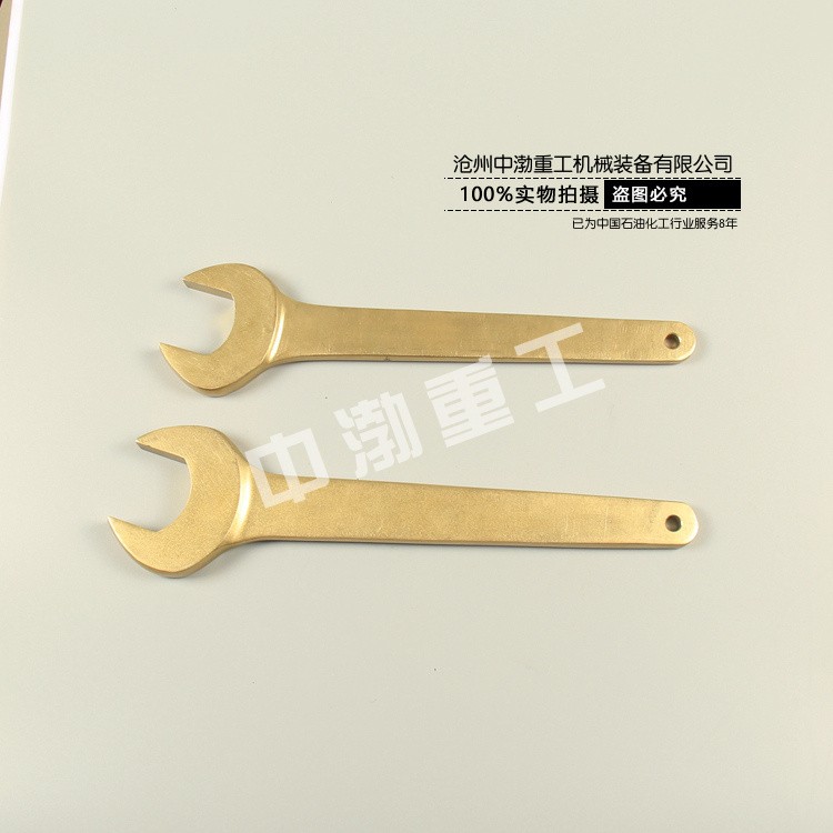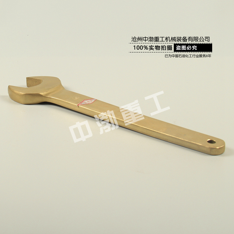 防爆單頭呆扳手,是重要的防爆扳手,采用鋁青銅合金制造,直柄設計,更加省力。一端制有固定尺寸的開口 ,用以擰轉一定尺寸的螺母或螺栓