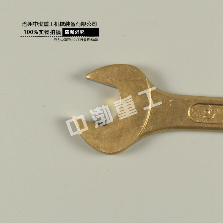 防爆呆扳手詳細介紹 防爆呆扳手優(yōu)點如下: 1、)采用鈹青銅鋁青銅合金鍛造。 2、)經(jīng)整體精加工處理,強度高,韌性好,防爆防磁防腐性能強。 3、)比標準扳手長而厚,更適合專業(yè)人士使用。多適用于緊固或拆卸易燃易爆場所一種或兩種規(guī)格的六角頭、方頭螺栓、螺母。