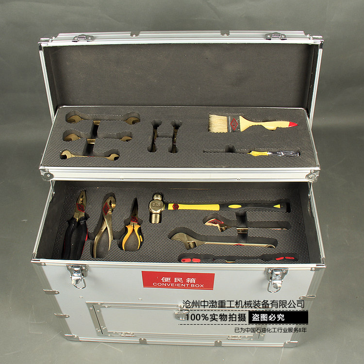 防爆便民箱/便民箱(中石油標(biāo)準(zhǔn)配置)包括:毛刷、電筆、防爆雙頭呆扳手、防爆活扳手、防爆圓頭錘、防爆一字螺絲刀、防爆十字螺絲刀、防爆尖嘴鉗、防爆克絲鉗、防爆鯉魚(yú)鉗。