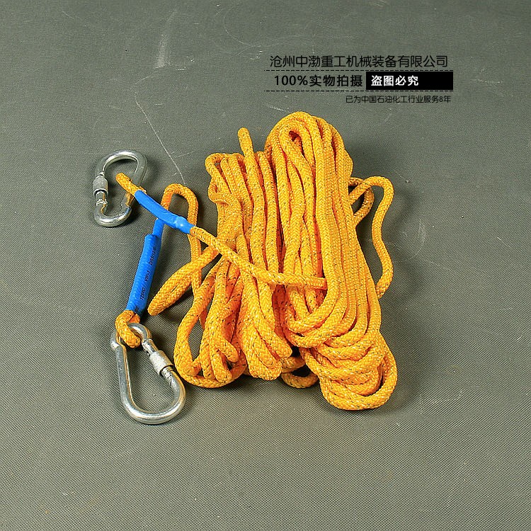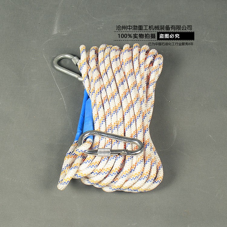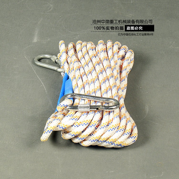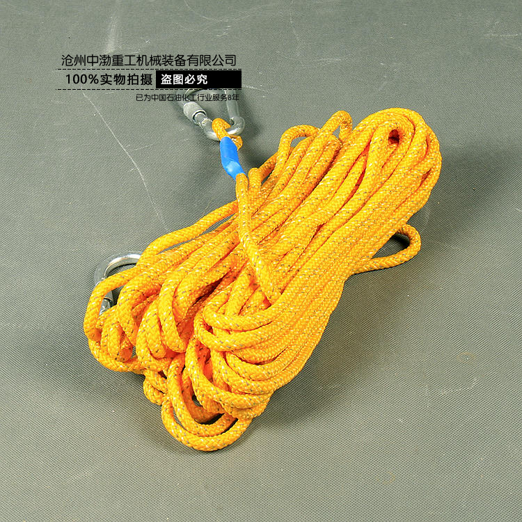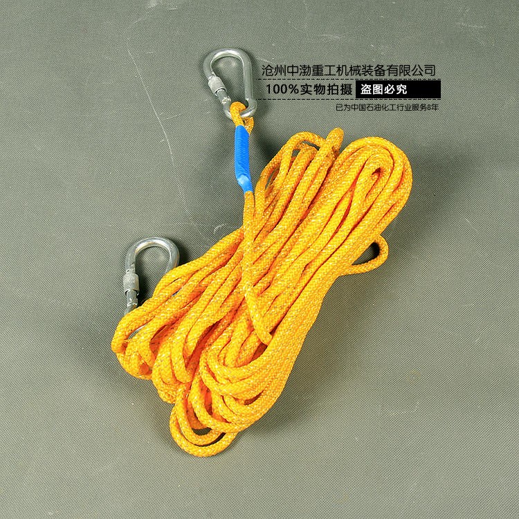 目前使用的救生繩主要是精制麻繩,繩的直徑為6毫米~14毫米,長(zhǎng)度為15米~30米,消防員用耐火救生繩通常用2.6mm航空鋼絲包芯。通常將直徑小的救生繩稱(chēng)為拋繩、引繩或標(biāo)繩,將直徑大的救生繩稱(chēng)為安全繩。