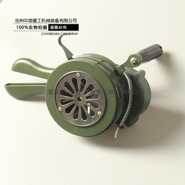 手搖警報(bào)器無需電源,可 以在無電源支持的都場(chǎng)所提供一種有效的報(bào)警。只需通過人工用手順時(shí)針方向搖動(dòng)手柄,速度達(dá)到初級(jí)(50-80轉(zhuǎn)/分)就可達(dá)到理想的報(bào)警效果,發(fā)出的聲音 尖銳,震撼力大、穿透力強(qiáng)。警報(bào)聲音大小取決于手柄搖動(dòng)的速度,新款手搖警報(bào)在音窗口設(shè)置檔板快門機(jī)制,可以迅速關(guān)閉音窗口,阻斷聲音,產(chǎn)生不同的信號(hào)。 手搖警報(bào)器體積小、重量輕、便于攜帶、安裝方便,不需要任何工具。只需0.15平方米的面積和人站立的地方就可以正常操作 了,流動(dòng)性作業(yè)非常強(qiáng)。民防、部隊(duì)、看守所、監(jiān)獄、礦山、機(jī)場(chǎng)、草場(chǎng)、油庫、倉庫、賓館、酒店等企業(yè)單位在發(fā)生危急情況下使用的一種理想報(bào)警設(shè)備。