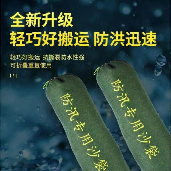 防汛沙袋是一種在防汛工作中廣泛使用的重要防護工具,由高強度的防水布料制成,主要作用在于抵御洪水的侵襲??梢詫⑵溲杆俣询B在可能出現(xiàn)洪水漫溢的區(qū)域,如門口、堤壩缺口、地下車庫入口等,形成有效的阻擋屏障,防止洪水涌入。
